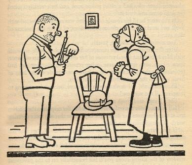 ilustraci ještě filmový záběr Švejka vyhazující