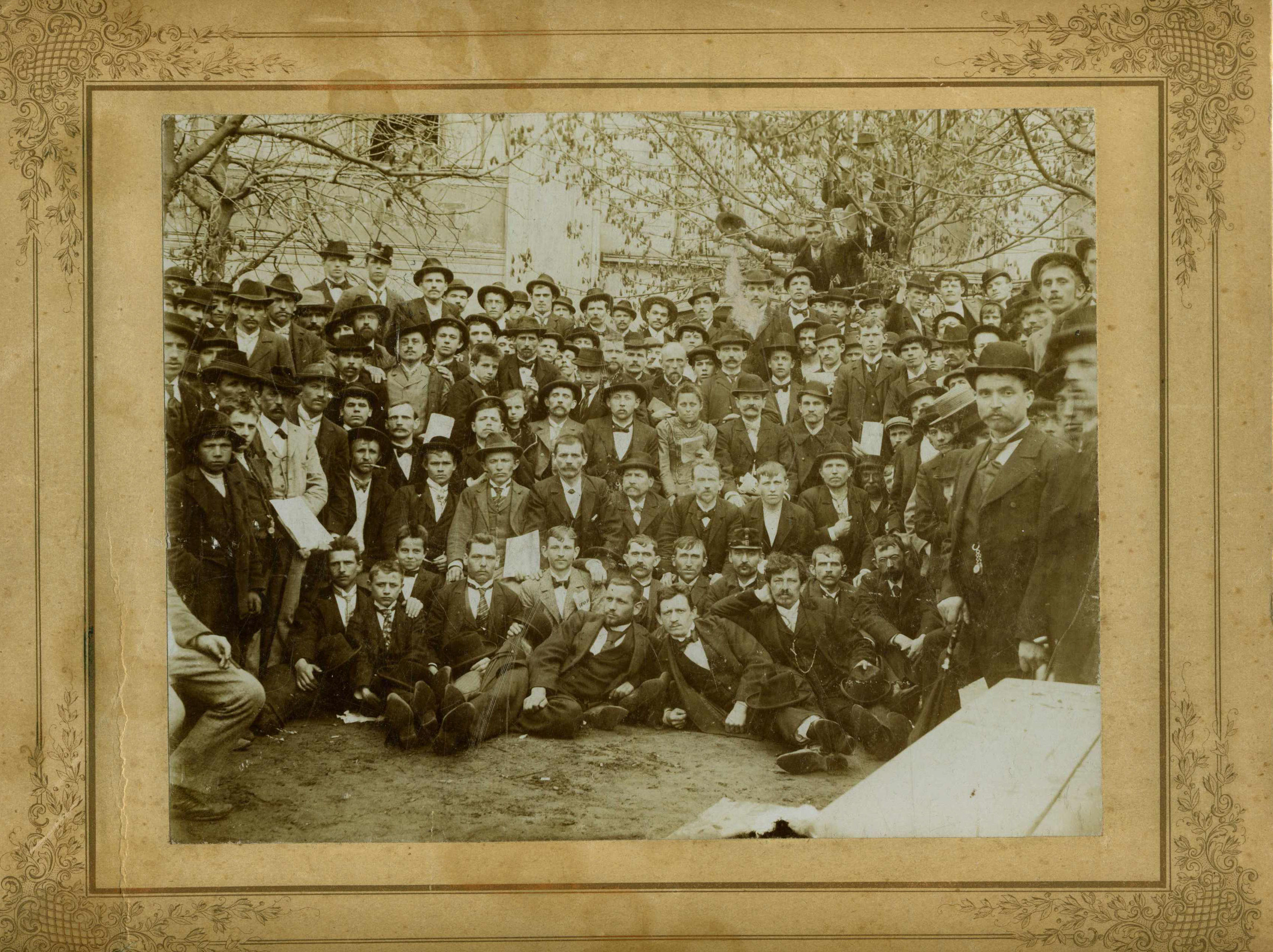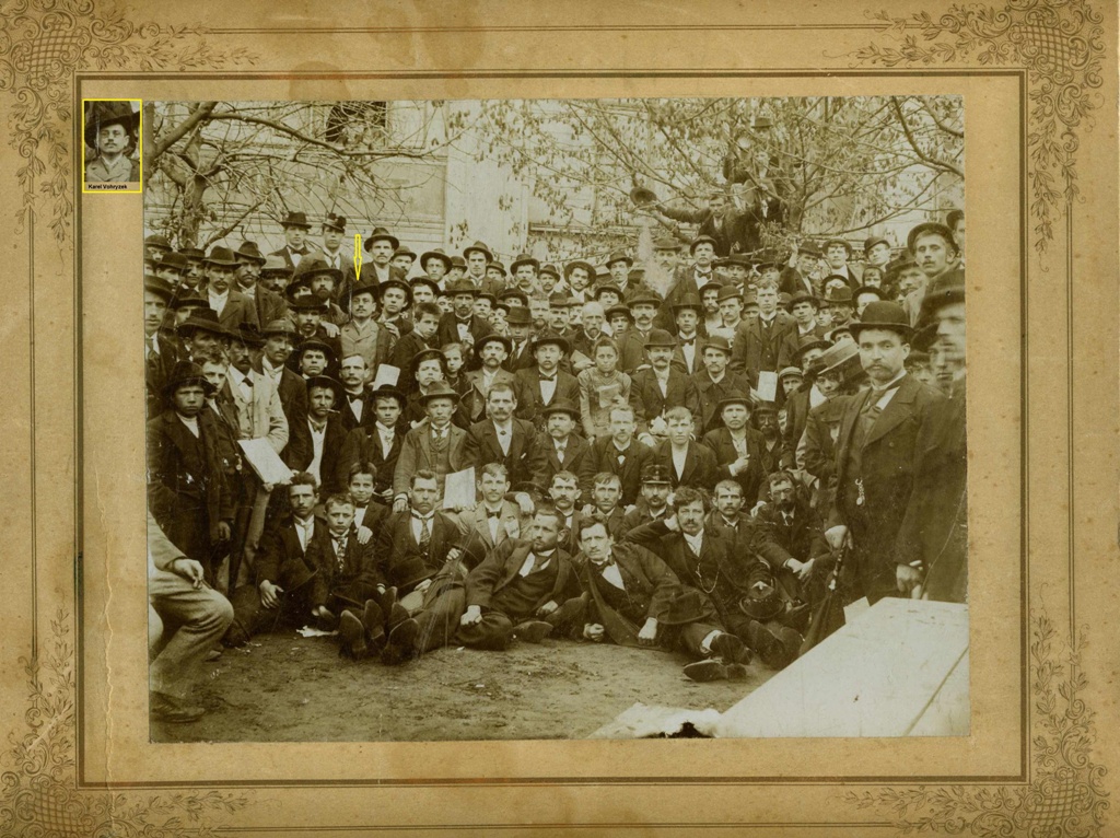 1. máj 1901 v Duchcově. Ten muž s plnovousem, vlevo vedle Vohryzka, je S. K. Neumann. |